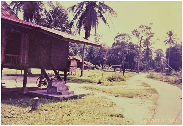 “Nostalgia Bangi. Sebuah Rumah Di Tebing Bukit. Kalau kita datang dari arah Batu 6, Sg.Kembung, Rinching dan Batu Lima bila nak ke Pekan Bangi, kita pasti akan terlihat rumah ini yang terletak elok - elok di selekoh tebing bukit sebelum masuk ke jalan Kg. Masjid Bangi. Dulu - dulu kami panggil rumah ini rumah Udin Ami atau rumah Kak Ami, orang lamo mengenalnya sebagai rumah Pak Uda Seman iaitu rumah panggung gaya Melaka yang letaknya paling tinggi di sekitar Bangi. Selekoh di bawah tu dulu dikira laluan paling bahaya di Bangi, banyak jugak kemalangan terjadi dulu - dulu termasuklah melibatkan kemalangan maut. Laluannya mendaki dari Batu 6 kemudian laju menurun bukit sebelum 'kona baring' menuju ke Masjid Bangi & Pekan Bangi. *Foto ini dirakam sekitar tahun 1986 - 87 di zaman nasi lemak Cik Kuntum, Cik Iti dan roti canai Ajmeer boleh dibeli dengan harga 30 sen.” (Faizal Zainal @ FB Pekan Bangi, 27 Februari 2025: "Nostalgia Bangi").