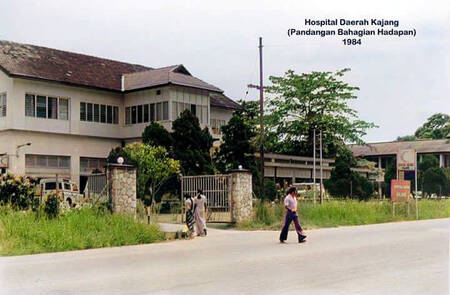Kiri: “Bangunan Perpustakaan Cawangan Ulu Langat, Perbadanan Perpustakaan Awam Selangor pada 1984. Bangunan ini kini menempatkan francais sate Hj Samuri yang terkenal.” (1984); Kanan: “Pemandangan hadapan Hospital Daerah Kajang yang terletak di Jalan Semenyih pada 1984. Hospital ini ditubuhkan pada tahun 1889 sewaktu penubuhan Kajang.” (1984).