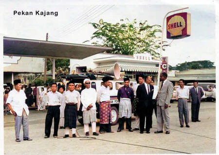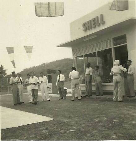 “Now the Shell is no more” - Shanker Nanthini. “Berdiri 3 dari kiri… Arwah Hj tasmin bin sakiban, pengasas satay kajang … Moyang” - Idah Sha (Facebook Bandar Kajang, 28 Oktober 2019: |"KAJANG": Shell Kajang, 1952. Gambar warna (”colorized“) oleh Mohamad Fareez).