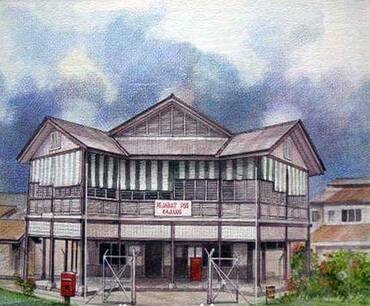 Kanan: “Paintings on urban or rural landscape may retain the original picture of buildings & structures. This watercolour picture of Kajang Post Office reveals its original facade which exhibits the blending beauty of local traditional architecture and a little from the West. Today, the ugly signboards, polycarbonate extentions…spoil the authenticity.” (Kajang Heritage Centre乌鲁冷岳社区文物馆, 3 Ogos 2015: "This watercolour picture of Kajang Post Office reveals its original facade").