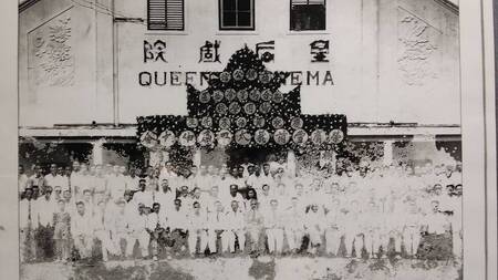 “Queen Cinema or later changed to National Cinema in Kajang was established by Kong Family. Besides entertaining Kajang folks with film shows, it was also used as hall for ceremony. The pictures showed line ups of notables congratulating Ng Bow Thai being awarded title by the King.”