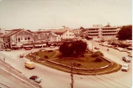 “Memori pekan Kajang, triangle about. Anda pasti melalui kawasan bila berada di pekan Kajang, tahun 1981. Foto filem Mustafa Yahya pelukis hulu langat.” (Tapa Seni Rimba @ Facebook Bandar Kajang Group, 15 Julai 2017: |"Memori pekan Kajang, triangle about").
