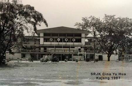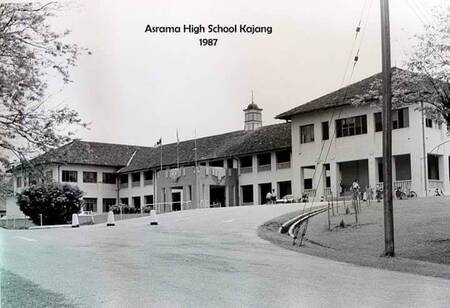 Kiri: “Sekolah convent kajang, foto tahun 1982, Sebahagian pekan kajang masih ada bazaar lama . Mustafa Yahya pelukis hulu langat.” (Tapa Seni Rimba @ Facebook Bandar Kajang Group, 3 Mei 2017: |"Sekolah convent kajang, foto tahun 1982").