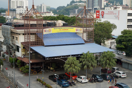 Kanan: Kini: “Restoran Sate Kajang Hj Samuri, terletak bersebelahan Stadium Kajang dan berhadapan stesen MRT Stadium.” (MStar, 21 Disember 2019: |"Kajang bukan sekadar ada sate sedap, tapi punyai sejarah menarik untuk dijelajah").