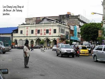 “Only if you were to spare some time walking slowly and looking up at the structures and designs of the old shop houses along Jalan Sulaiman, Jalan Besar, Jalan Tukang and Jalan Mendaling, you will notice artistic design and year of construction displayed at the buildings. Most of the buildings in “Kajang Old Town” were constructed around 1920s to 1930s. The architecture of these shop houses is a combination of traditional Chinese and European design. The ground floor was used for commercial activities and the upper floor as living space for the family. The older street of Jalan Tukang has more varied display of design as compared to others. Till today, the corner Lee Chang Long goldsmith shop stands as a Kajang landmark. Formerly named Hong Bee, i.e. Low Ti Kok’s shop had a panel of cast-iron floral motif (picture) which was torn down and replaced by flat wall some years ago.” (Lee Kim Sin, September 4, 2007: |"Old Buildings, Architectures and Structures in and around Kajang Town". Gambar kanan: Hanchoo, 15 Mac 2015: |"Kajang Cultural Mapping").
